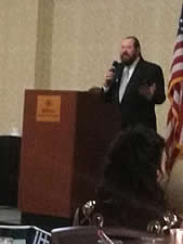 Master Winokur display Pioneer Award, pic He is giving his speech to banquet participants