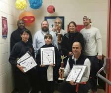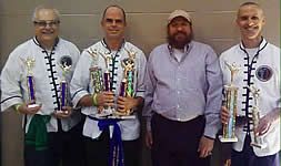 Event Results: 5 Competitors - 10 Awards & Triple Crown Award presented! Tim M (Willow Green) 1st Int Weapons (Straight Sword), 2nd Willow form #3, Joel S (8 Animal Blue) 1st Int Weapons, 2nd Int Creative Weapons, 1st Tiger, & Triple Crown Award Tate M (Willow Yellow, Trapping Orange) 1st Willow #1, 1st Eagle Form (tradl), 2nd Weapons (Willow Pole), Scott L (Wing Chun Yellow/8Animal White), 2nd Beg Forms Small Dragon, Did not compete in Sparring Mateo (9 yrs old 8-Animal Yellow) 3rd Kids Sparring, Participation Medal Kids Beg Form (Small Dragon) *** Tate M., & Joel S., both Won 3 Awards in same event making our "Wall of Fame"! ***